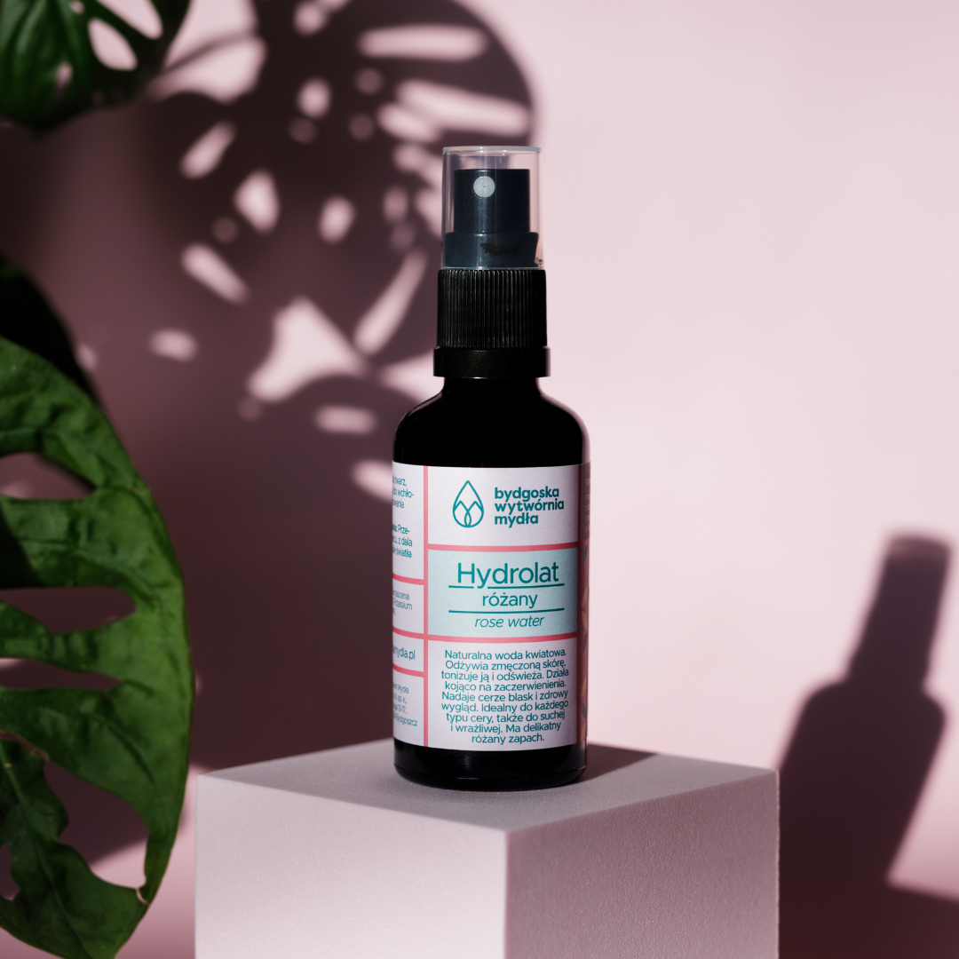 Woda różana odżywia zmęczoną skórę, tonizuje ją i odświeża. Działa łagodząco na zaczerwienienia oraz nadaje cerze blask i zdrowy wygląd. Hydrolat z róży damasceńskiej jest wskazany do pielęgnacji wszystkich typów cery, ale szczególnie zadba o suchą i wrażliwą.