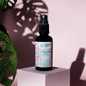 Hydrolat z róży damasceńskiej w buteleczce z atomizerem. Hydrolat zapobiega odwodnieniu skóry - odżywia i tonizuje ją. Kosmetyk odpowiedni dla wszystkich typów cery.