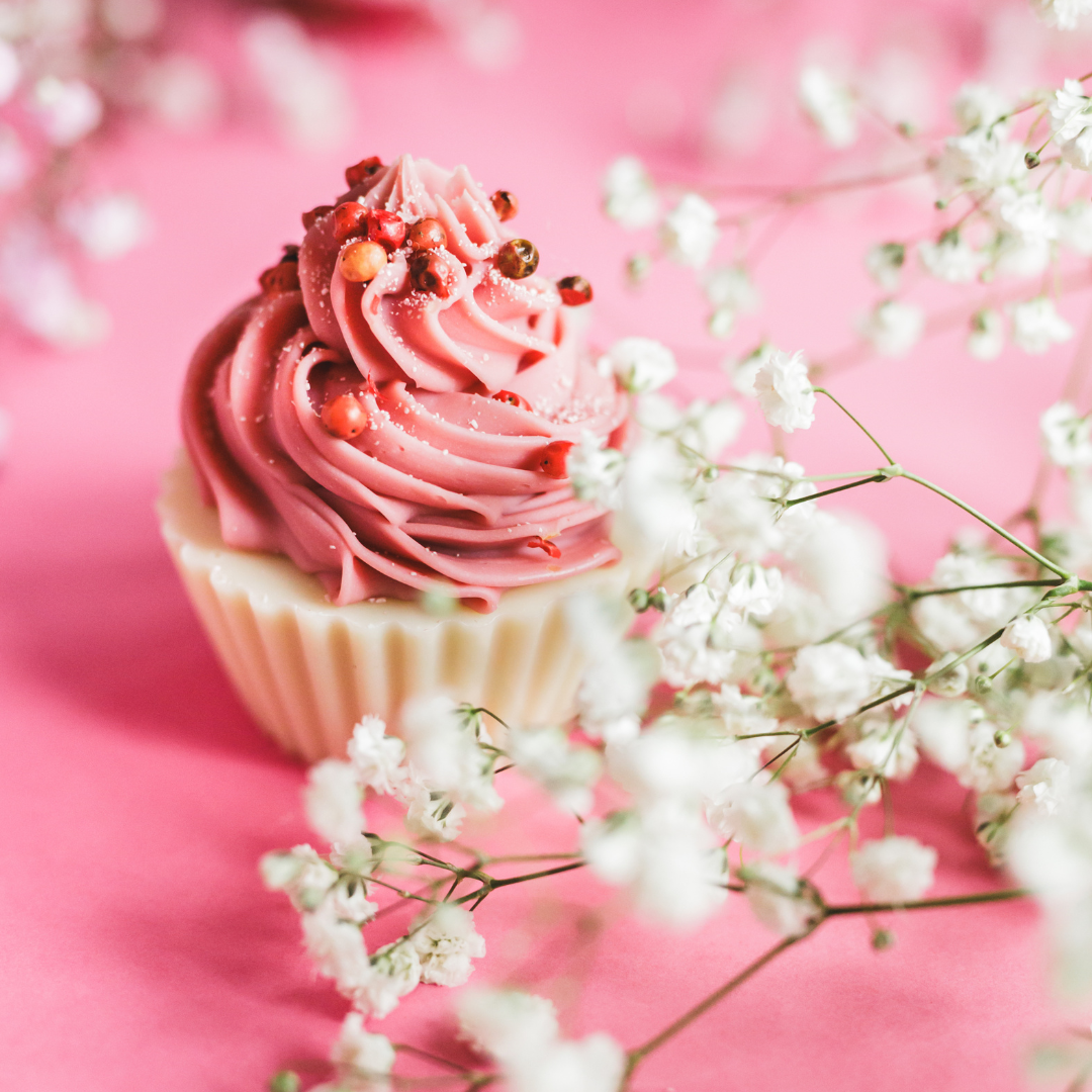 Mydła naturalne oprócz mycia i nawilżania mogą cieszyć nasze oczy. Dlatego nasze babeczki do kąpieli ozdabiamy z cukierniczą precyzją. Mydlane babeczki sodowe oprócz niesamowitego wyglądu, zawierają naturalne składniki: oliwę z oliwek, olej kokosowy oraz palmowy. Dodatkiem nawilżającym jest olej rycynowy.