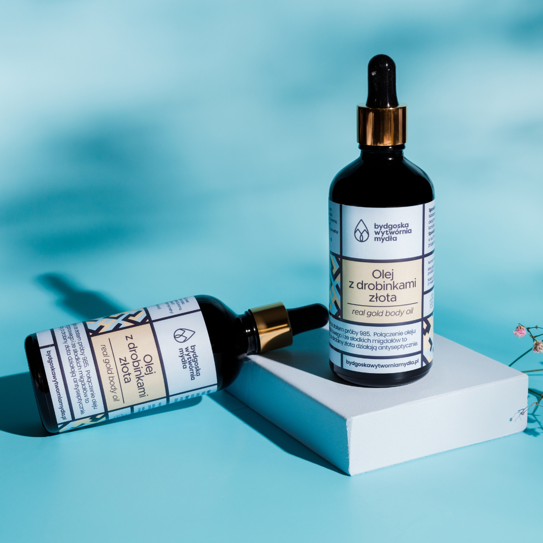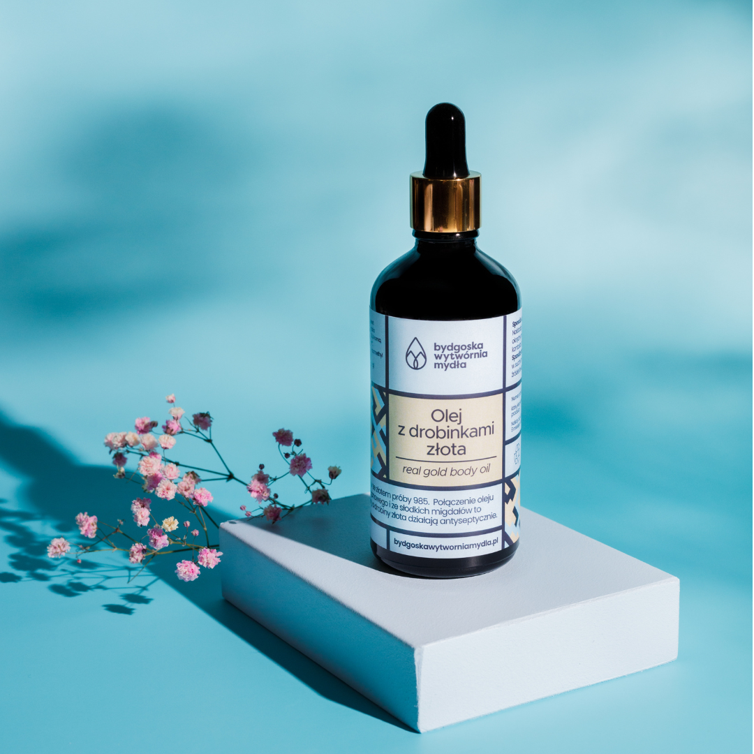 Olej z drobinkami złota zastąpi balsam do ciała w Twojej kosmetyczce. Oleje, które wybraliśmy, działają nawilżająco, złoto kosmetyczne ma właściwości antyseptyczne, a zapach działa na zmysły.