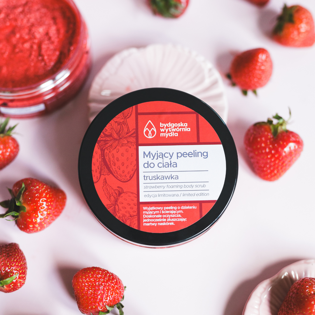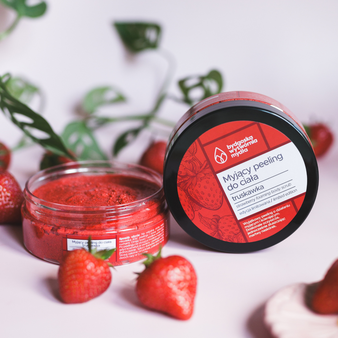 Peeling myjący do ciała truskawka to owocowe szaleństwo zamknięte w formie naszego bestsellerowego peelingu. Peeling myjący dokładnie pozbywa się martwego naskórka pozostawiając skórę gładką i miękką - dodatkową zaletą jest brak tłustego filmu! Peeling myjący jednocześnie myje i szoruje, nie zostawiając na skórze tłustej warstwy.