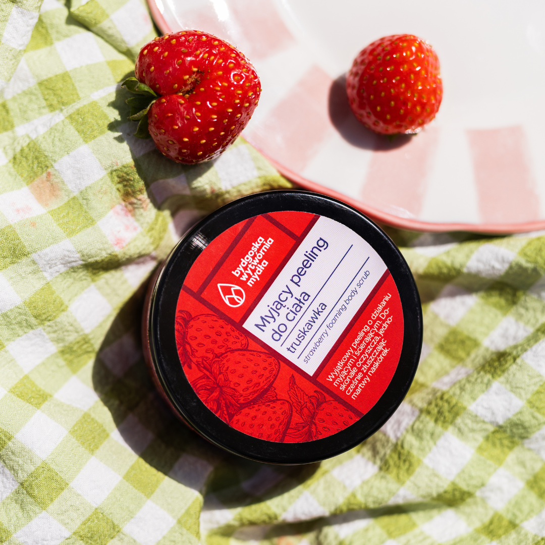 Peeling myjący do ciała truskawka to owocowe szaleństwo zamknięte w formie naszego bestsellerowego peelingu. Peeling myjący dokładnie pozbywa się martwego naskórka pozostawiając skórę gładką i miękką - dodatkową zaletą jest brak tłustego filmu! Peeling myjący jednocześnie myje i szoruje, nie zostawiając na skórze tłustej warstwy.