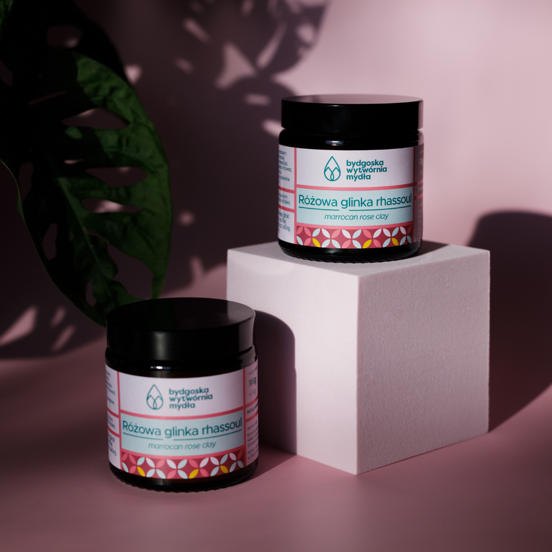 Różowa glinka rhassoul w proszku, jest to mieszanka najdelikatniejszej z glinek, białej (kaolinowej) oraz czerwonej. Ten duet razem może naprawdę wiele!