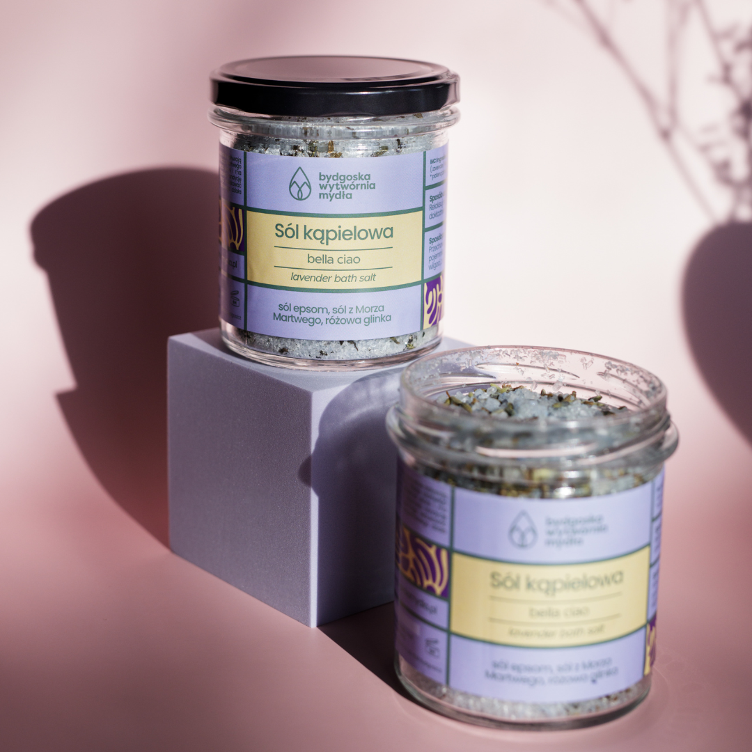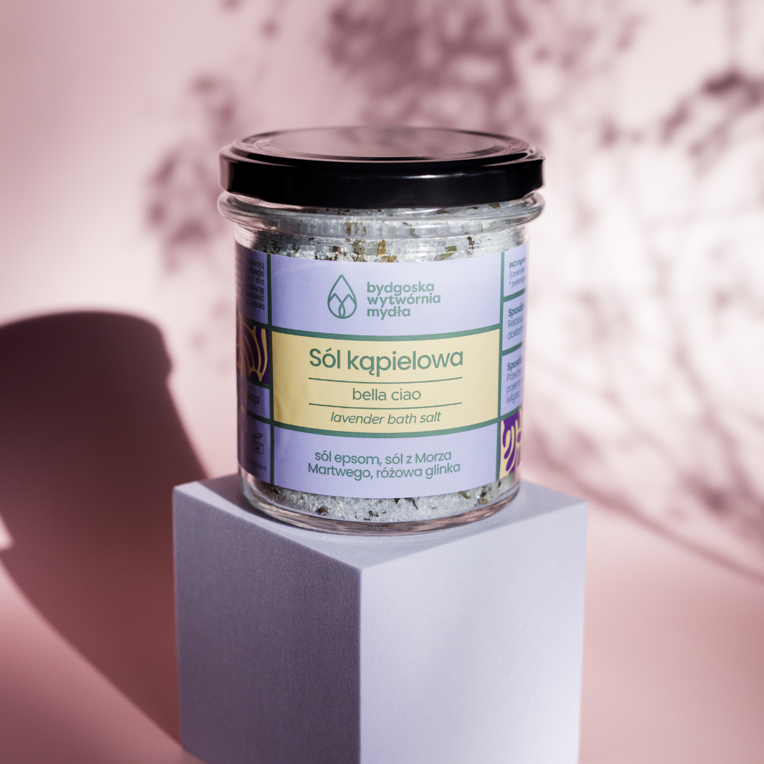 Lawendowa sól kąpielowa Bella Ciao to relaksujące połączenie soli z morza martwego, soli epsom, fioletowej glinki oraz suszonej lawendy, zwieńczone lawendowym olejkiem eterycznym. To połączenie stanowi idealny dodatek do długiej, relaksującej kąpieli.