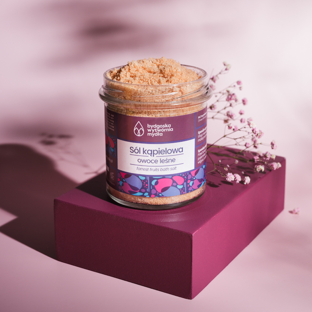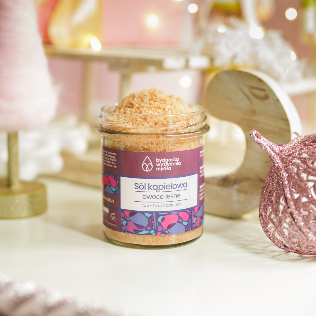 Sól Owoce Leśne to dobrze Wam znana sól "Truskawkowe love" z pachnącego kąpielowego trio, oprócz truskawki na nasze półki wpadły też sole o aromatycznych zapachach brzoskwini i ziół.